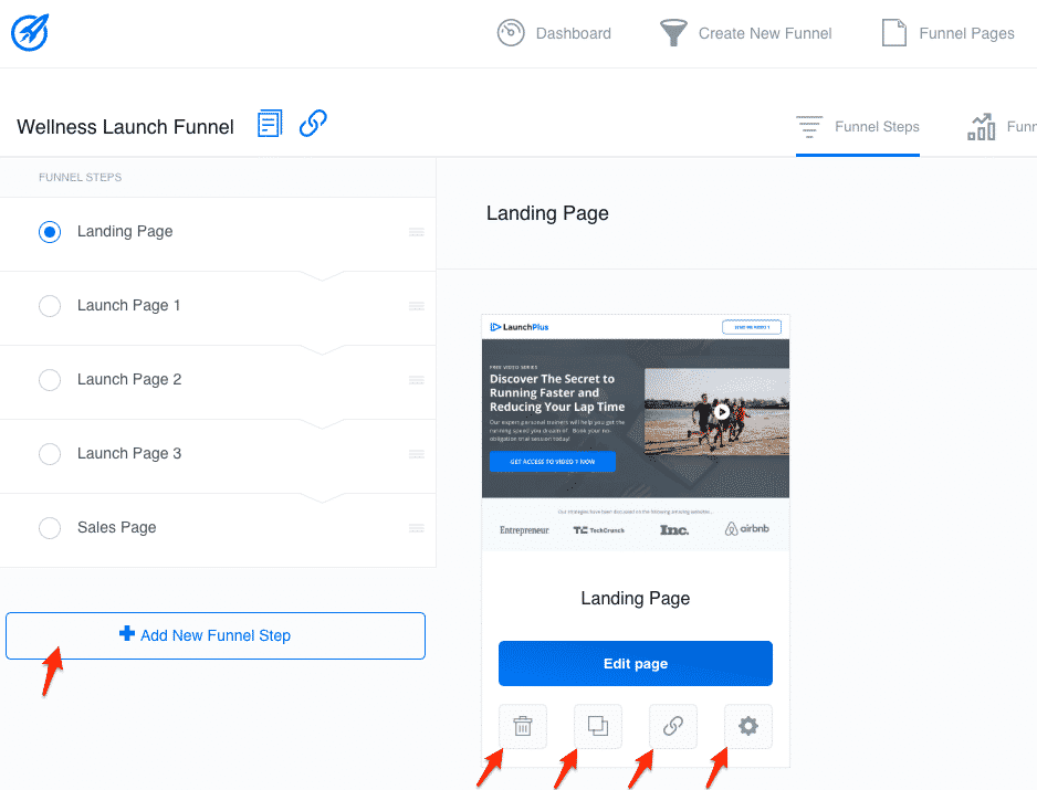 OptimizeFunnels lets you preview pages, clone pages, publish and unpublish pages, add new steps, reorder steps and much, much more.