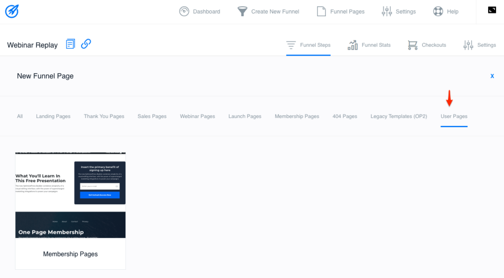 You can choose any funnel type, and you will then be presented with a range of pre-built funnels for that category.