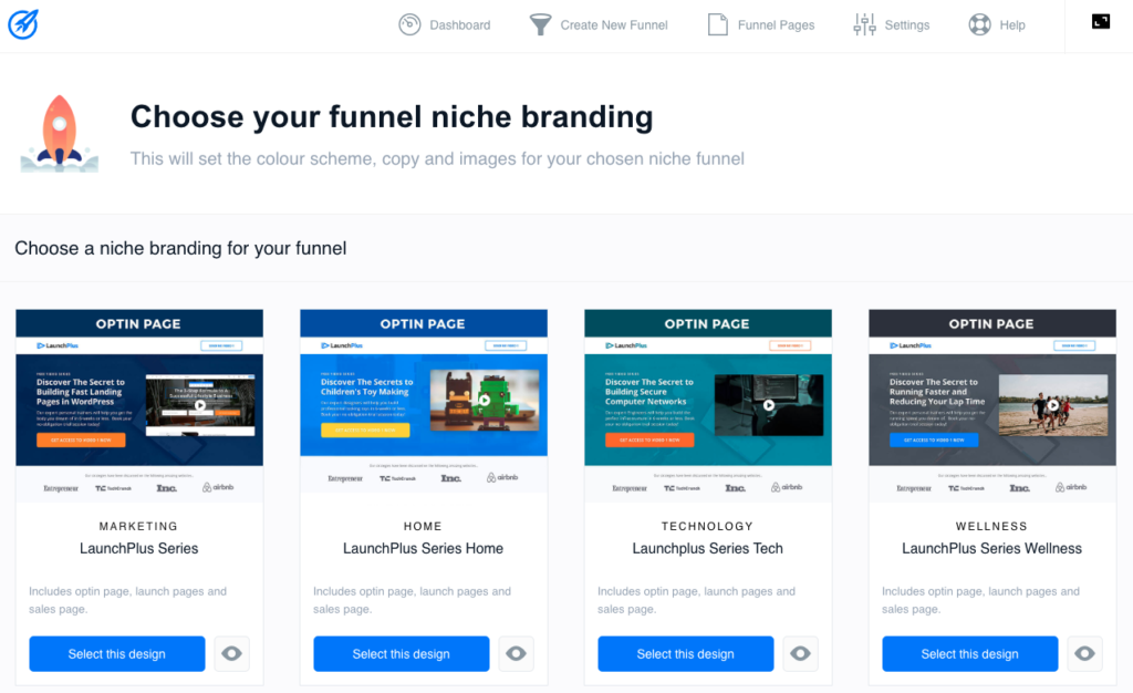 This means that your chosen funnel will be optimised for your niche with images, branding, colour scheme and copy pre-created.