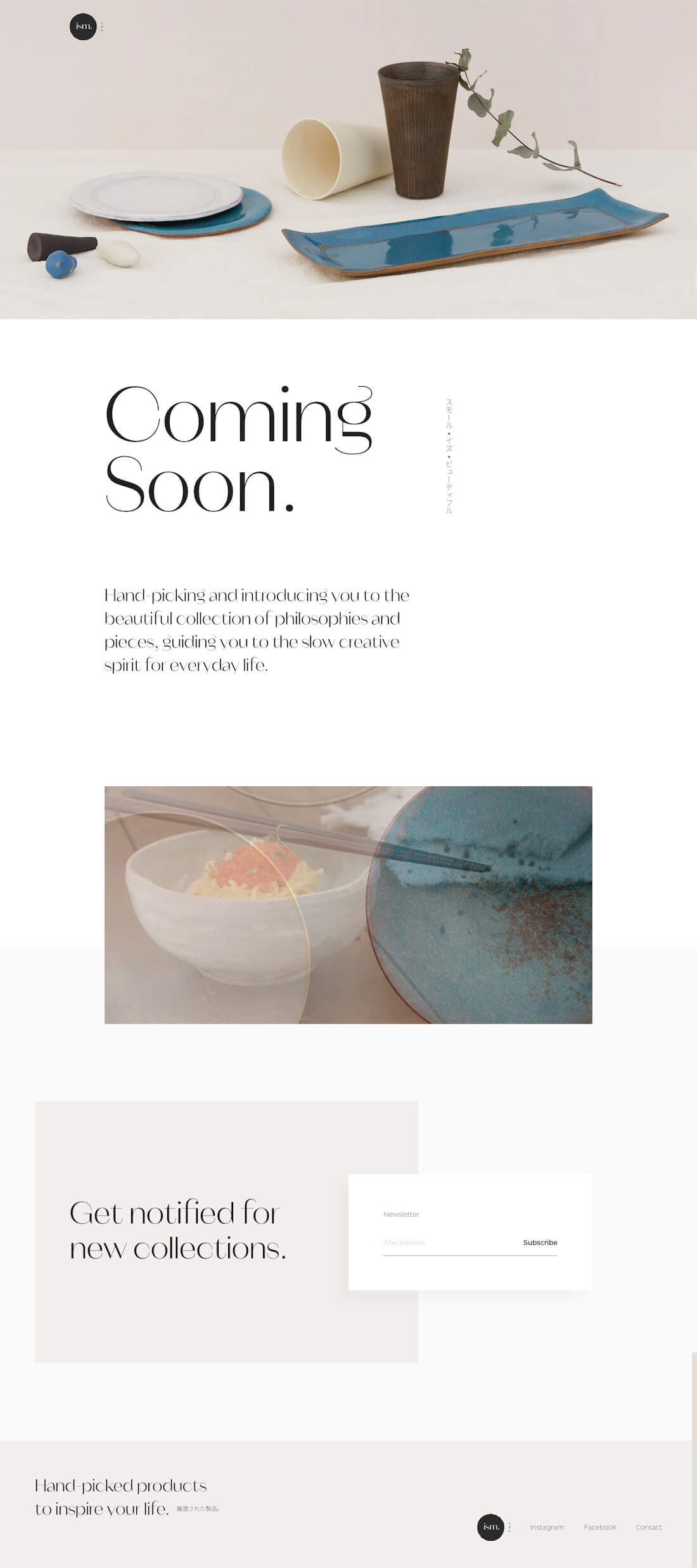 For starters, this landing page has high-quality pictures of the products that they are specializing in. And just below the heading photo, there's a 'coming soon' message that alerts website visitors about the products that are about to be launched.