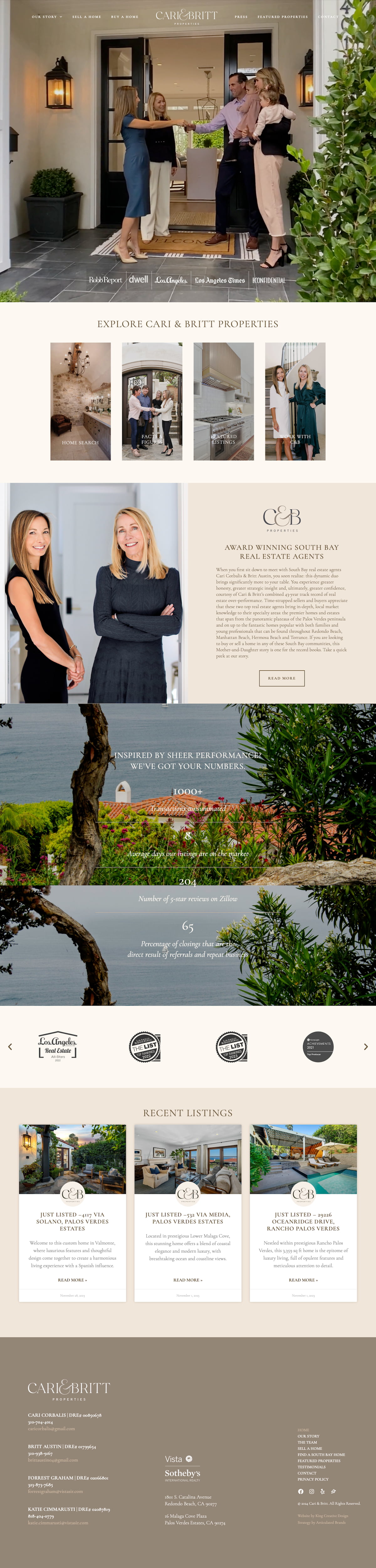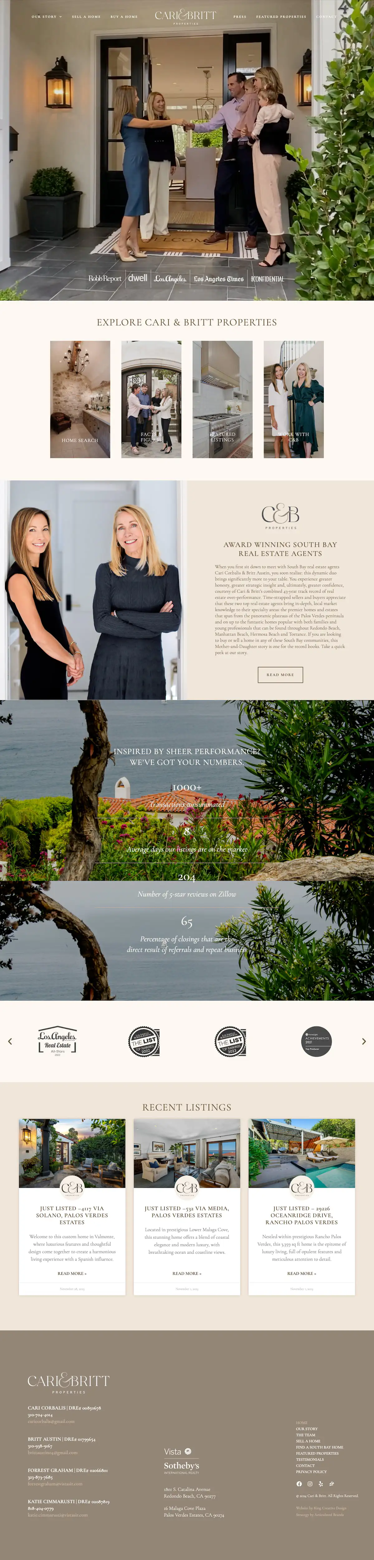 Cari & Britt is a South Bay real estate agency led by Cari Corbalis and Britt Austin. They specialize in luxury homes and estates in areas like Palos Verdes, Redondo Beach, Manhattan Beach, Hermosa Beach, and Torrance.