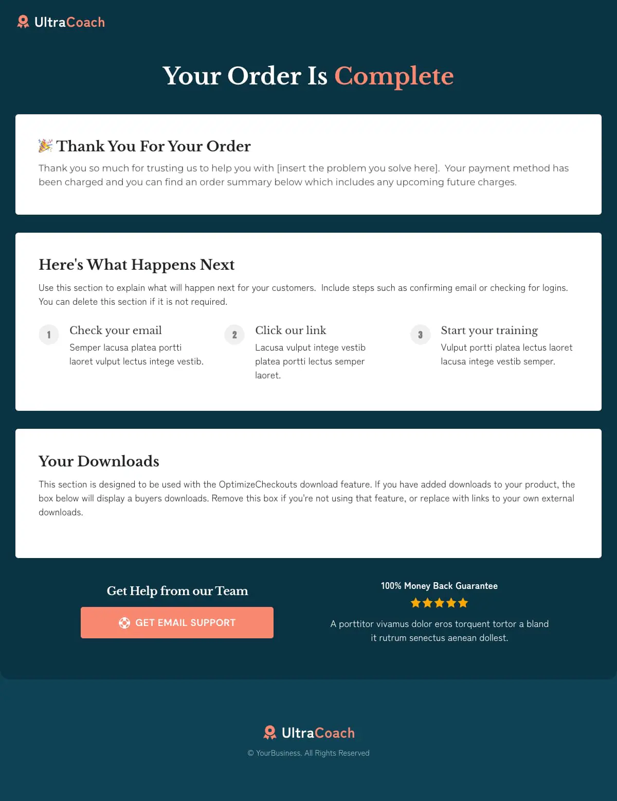UltraCoach Checkout Confirmation Page