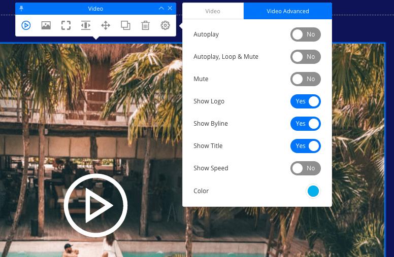 The video thumbnail element makes a great trigger element for your video popups (as mentioned above). If you want to show a nice looking video thumbnail image with a play button overlayed, you simply drop in a video thumbnail element, set the image, and you're done.