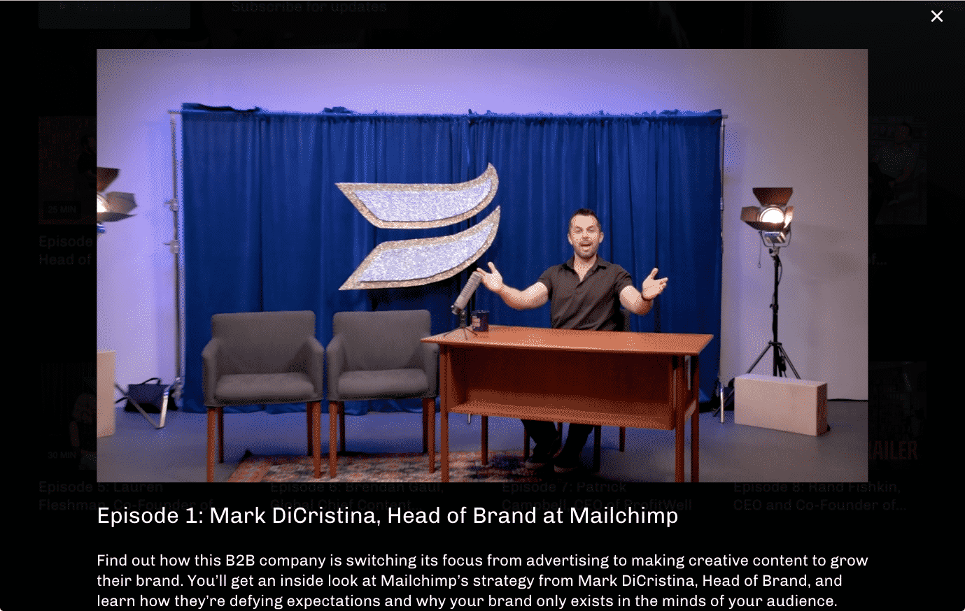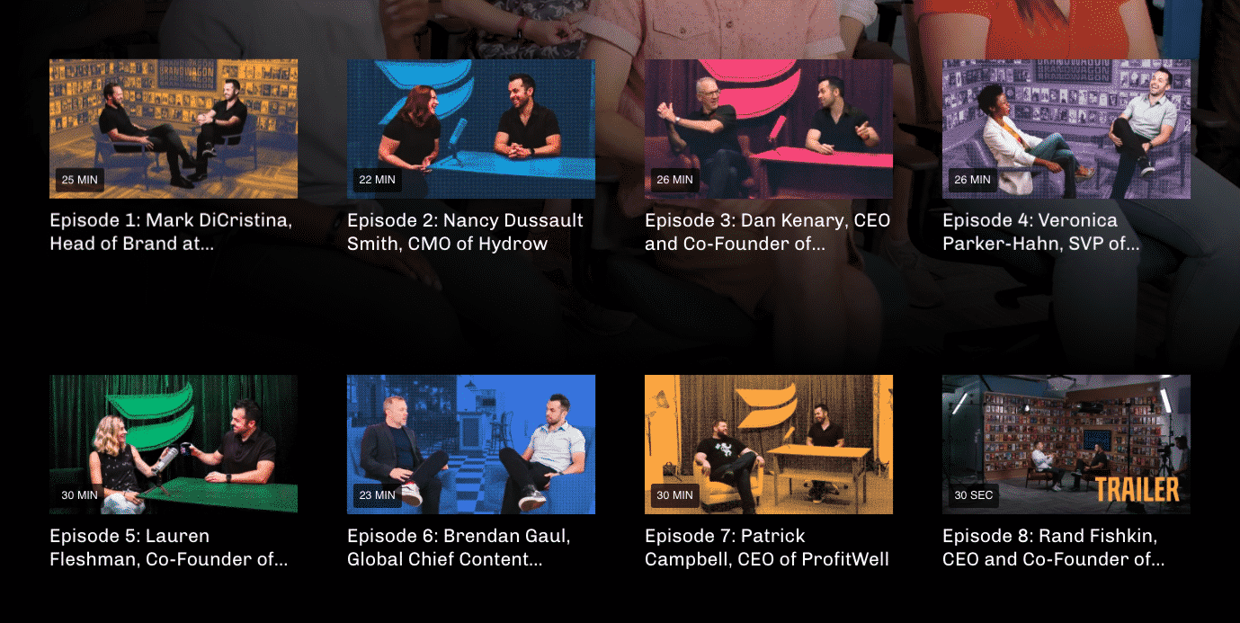 See the page here: https://wistia.com/series/brandwagon